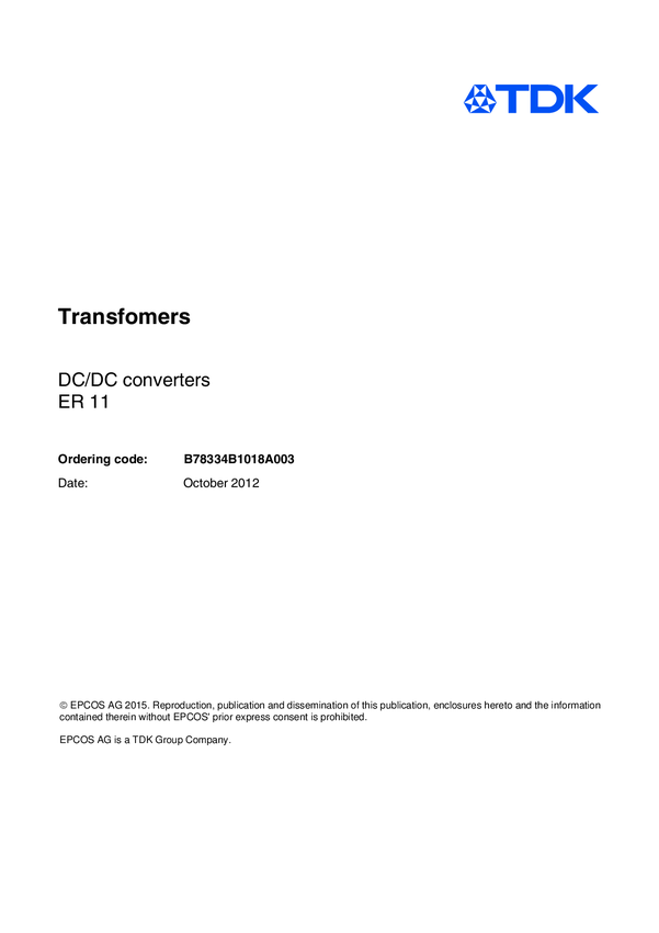 B78334B1018A3 Power Transformer 0.382:1:1:1:1 Triple Prim. Dual Sec. Surface Mount