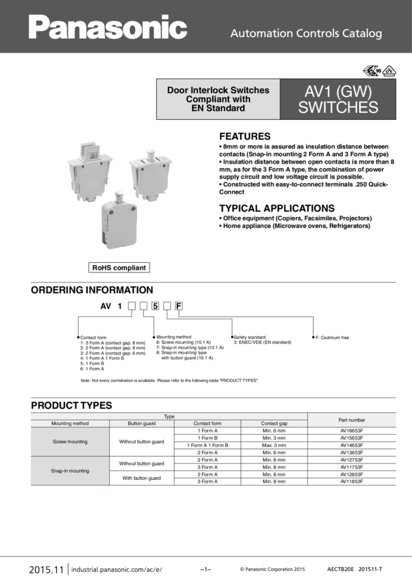 AV11853F Electromechanical Switch Safety Interlock Switch 10.1A