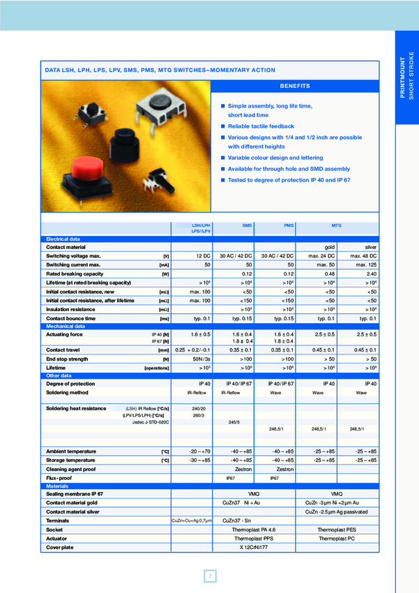 1301.9315 LSH 6X6 SHORT TRAVEL SWITCH 5.0MM