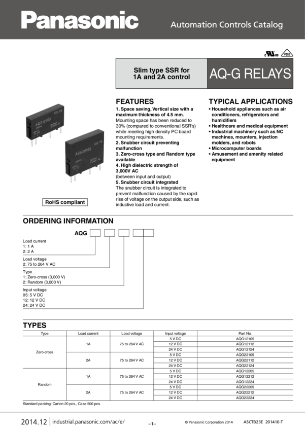 AQG22105J Relay SSR 6V DC-IN 1A 264V AC-OUT 4-Pin Slim