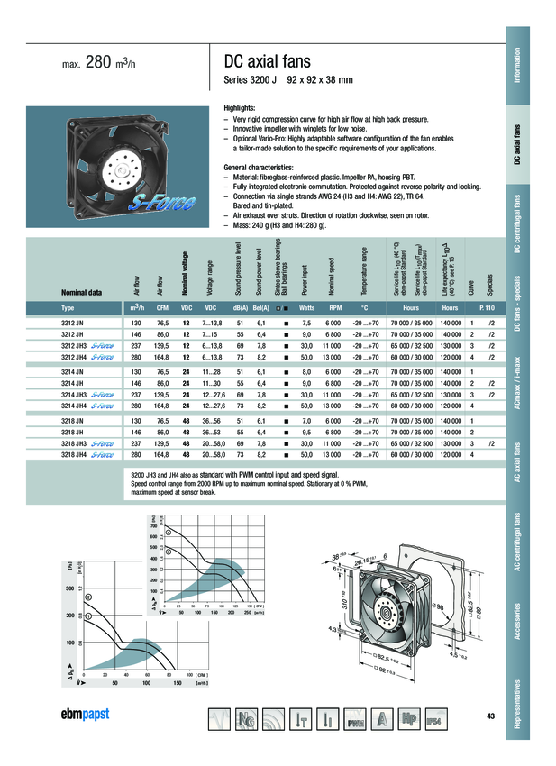 3212JH4 DC Fan Ball Bearing 24V 50W 13000RPM 165CFM 73dB Flange Mount
