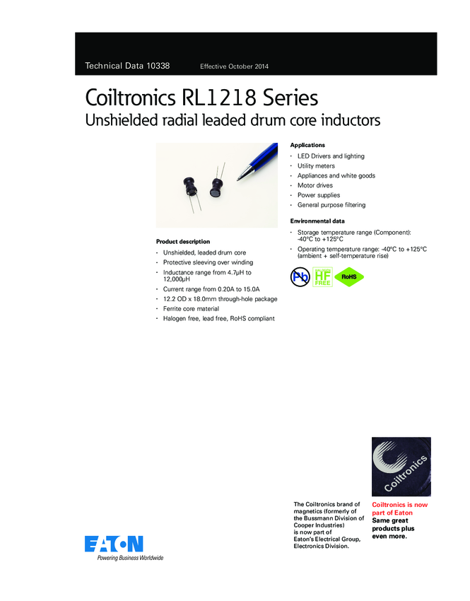 RL1218-472-R Ind Power 4.7mH 10% 10KHz Ferrite 322mA Radial T/R