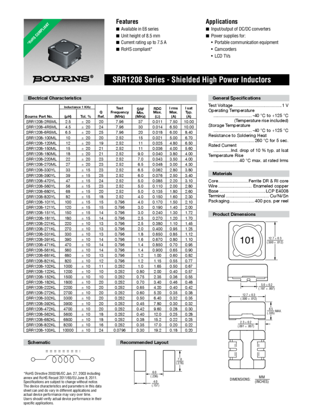 Ind Power Shielded Wirewound 560uH 10% 1KHz 14Q-Factor Ferrite 650mA T/R