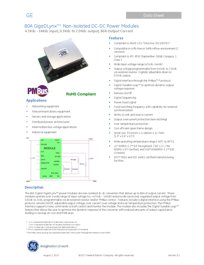 GDT080A0X3-SRZ Module DC-DC 1-OUT 0.6V to 2V 80A 33-Pin SMD T/R