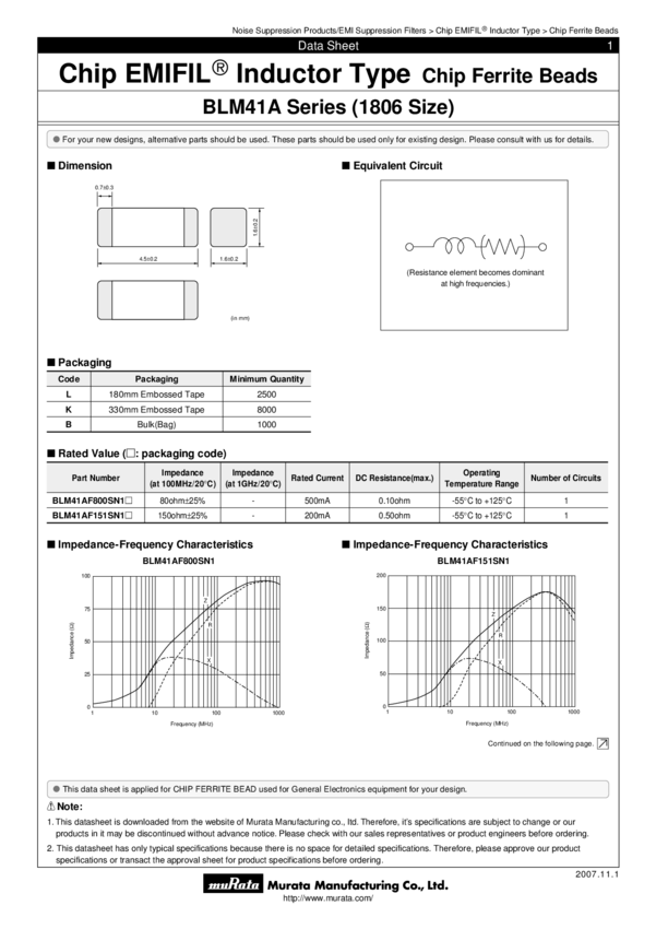 BLM41AF800SN1L EMI Filter 0.2A Flat Style SMD
