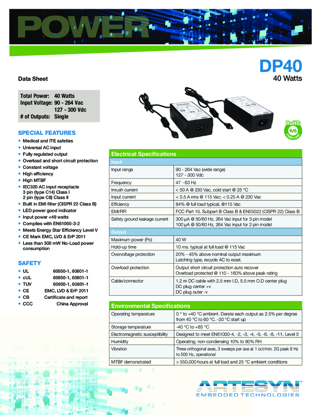 DP4048N3MRELABELLED AC/DC Power Supply Single-OUT 48V 0.84A 40W