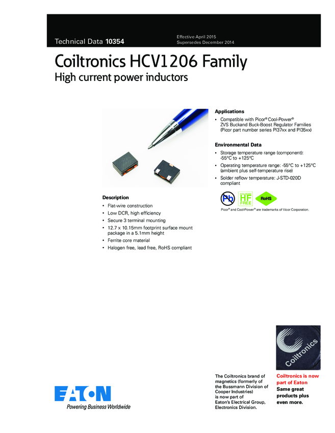 HCV1206-R90-R Ind Power 900nH 10% 100KHz Ferrite 14A 1206 T/R