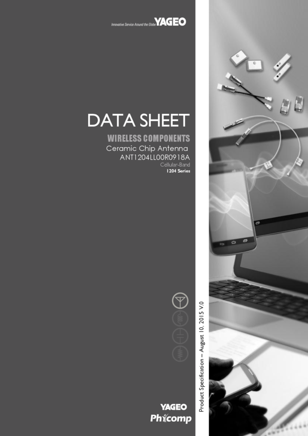 ANT1204LL00R0918A Antenna Chip -1.6dBi/1.08dBi 900MHz/1800MHz 2-Pin SMD T/R