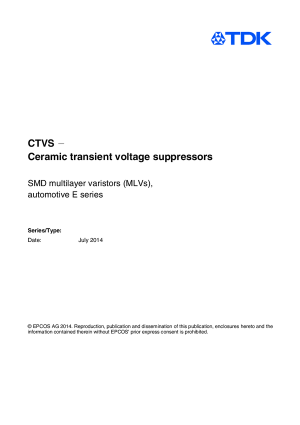 B72510E1140S262 Var MOV 14VAC/16VDC 120A 22V to 27V 0805 SMD Blister T/R