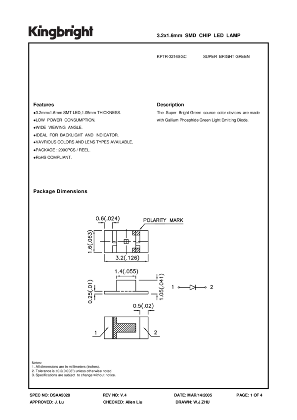 KPTR-3216SGC LED Uni-Color Green 565nm 2-Pin Chip LED T/R