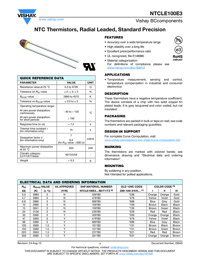 NTCLE100E3153JB0 Thermistor NTC 15KOhm 5% 2-Pin Radial Bulk