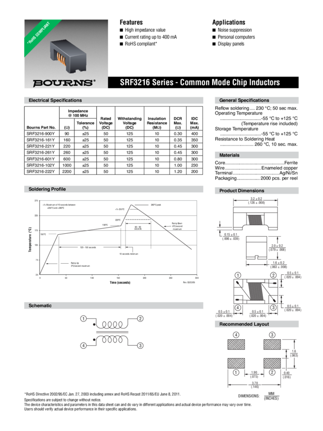 SRF3216-161Y, SRF3216-221Y, SRF3216-601Y, SRF3216-900Y