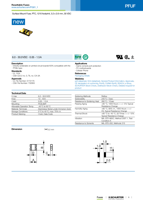 PFUF.010.2 PFUF PTC FUSE SMT 100 mA (1210)