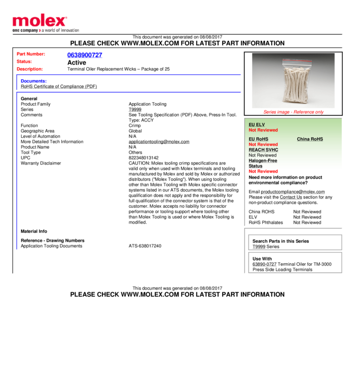 63890-0727 Replacement Wicks for 63890-0727 Terminal Oiler