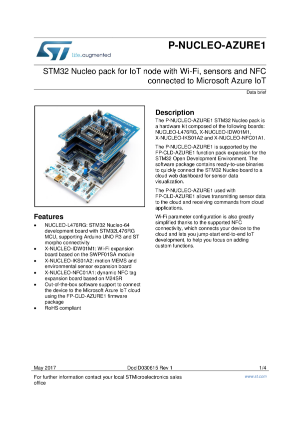 STM32 Nucleo pack for IoT node with Wi-Fi, sensors and NFC connected to Microsoft Azure IoT
