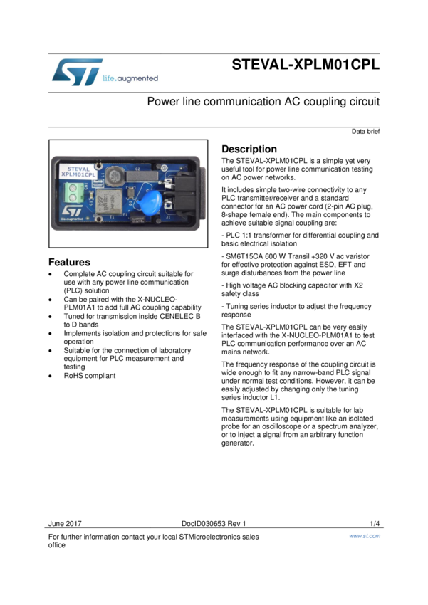 STEVAL-XPLM01CPL Power line communication AC coupling circuit