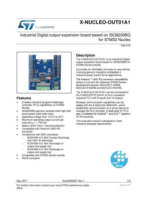 X-NUCLEO-OUT01A1 Industrial Digital output expansion board based on ISO8200BQ for STM32 Nucl...