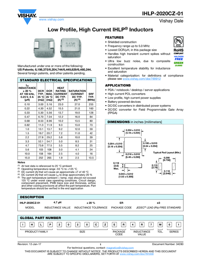 - IHLP2020CZER1R5M01, IHLP2020CZERR47M01, IHLP2020CZERR22M01, IHLP2020CZERR82M01, IHLP2020CZERR33M01, IHLP2020CZERR10M01, IHLP2020CZER2R2M01, IHLP2020CZERR68M01, IHLP2020CZER3R3M01, IHLP2020CZER1R0M01, IHLP2020CZER5R6M01