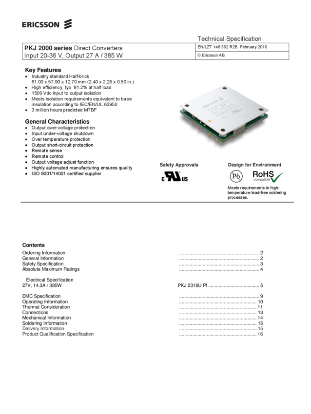 PKJ 2316U PIM Module DC-DC Single-OUT 27V 14.3A 385W 9-Pin Half-Brick