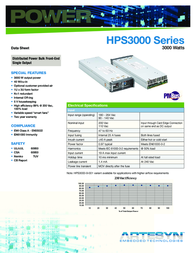 HPS3000-9 AC/DC Power Supply Single-OUT 48V 62A 3KW