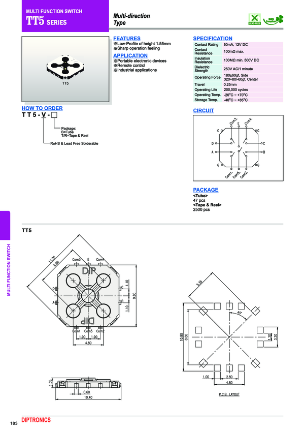 TT5-V-B Electromechanical Switch Multi Function Switch Tube
