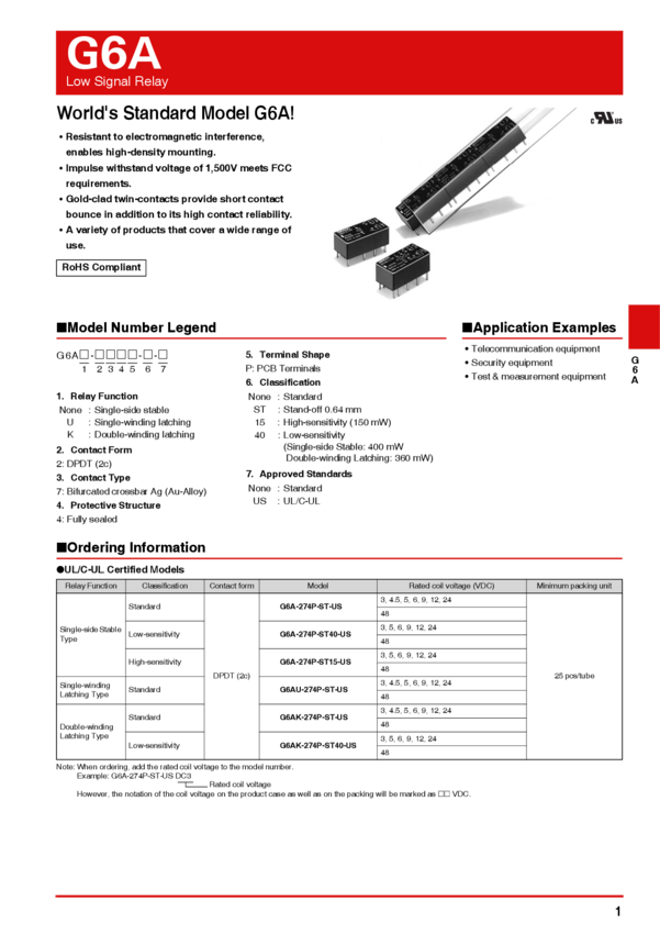G6AU274PSTUS12DC, G6A274PSTUS24DC, G6AU234PSTUS5DC, G6A234PSTUS48DC, G6A274PSTUS5DC, G6AK274PSTUS5DC, G6AK274PSTUS12DC, G6A234PSTUS24DC
