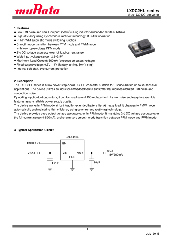 LXDC2HL25AA053 Conv DC-DC Single Step Down 2.3V to 5.5V 4-Pin SMD T/R