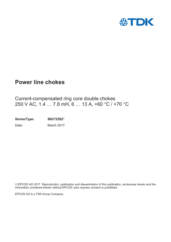 B82725S2103N3 Ind Power Line Choke Toroid 2.8mH 30% 10KHz Ferrite 10A Pin Box