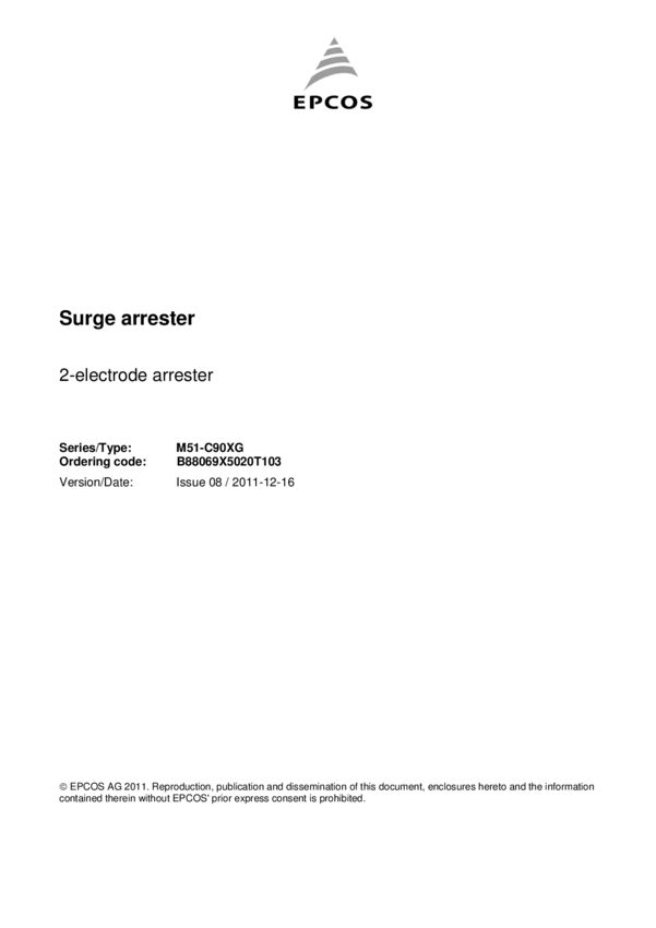 B88069X5020T103 Surge Arrestor 2-Electrode Surge Arrestor 90VDC 7.5KA Thru-Hole T/R