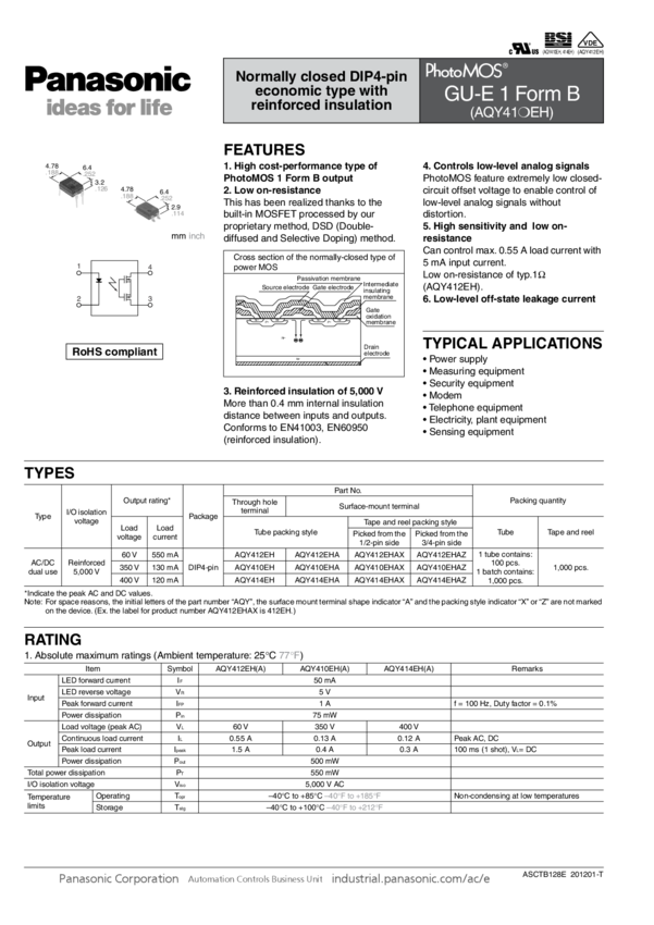 AQY412EHAZ, AQY412EH, AQY412EHAX, AQY410EHAZ, AQY410EHAX