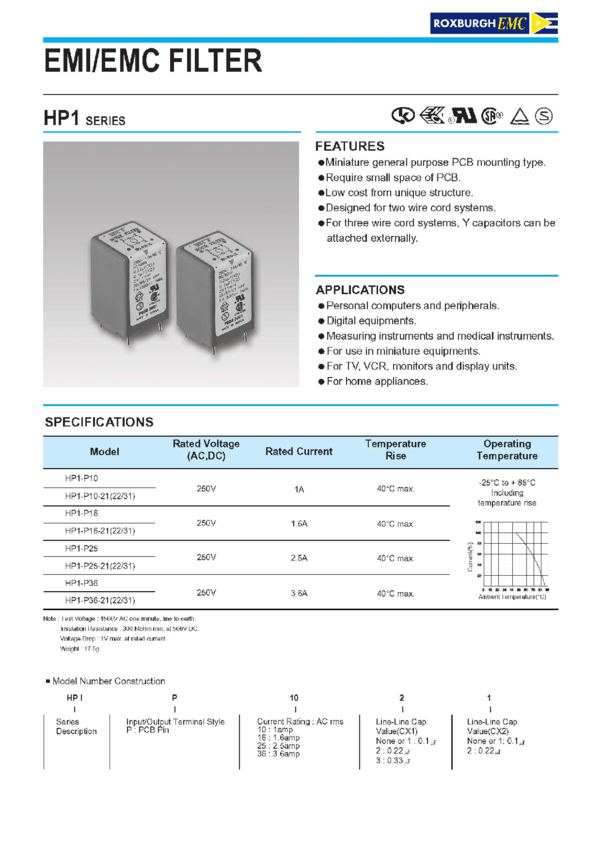HP1P16 EMI Filter 1.6A 250VDC RDL Thru-Hole