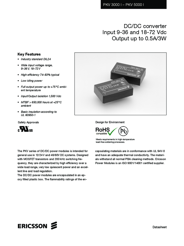 PKV5315PI Conv DC-DC Single Step Down 18V to 72V 10-Pin DIL