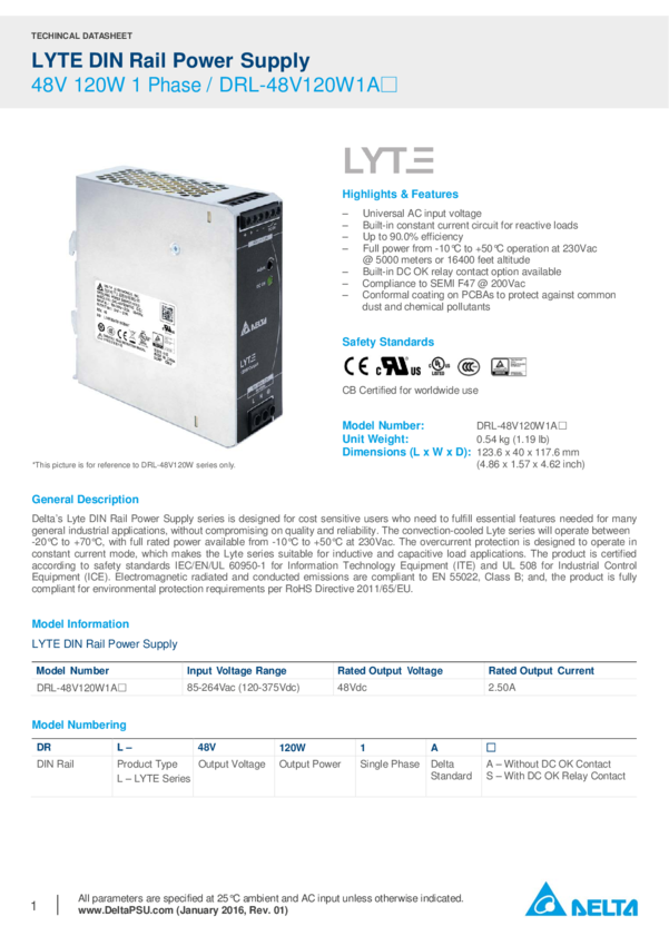 DRL-48V120W1AS AC/DC Power Supply Single-OUT 48V 2.5A 120W