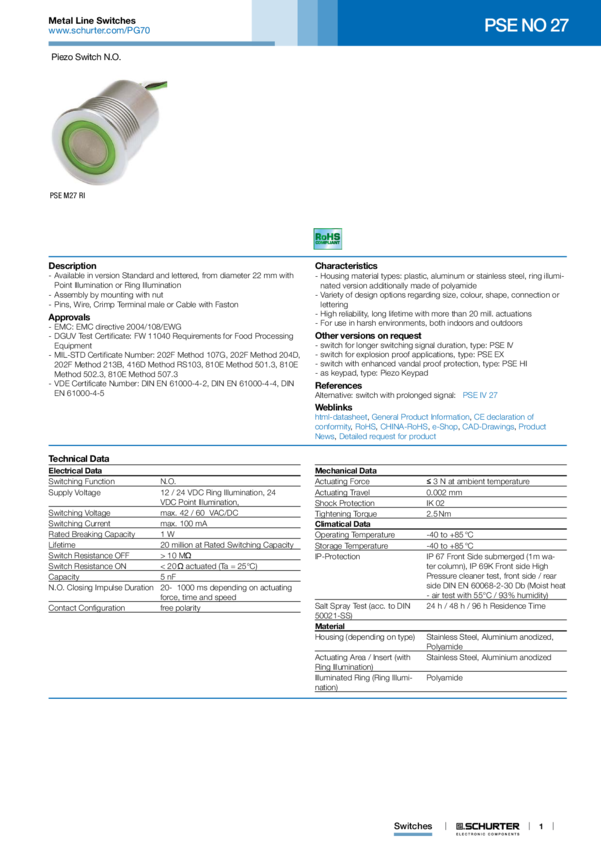 1241.3011 PIEZO M27 SWITCH RD/GR RING LED 24V WIRE