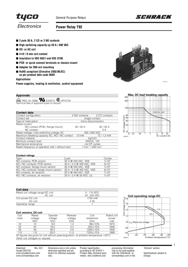 1-1393212-7 Electromechanical Relay DPST-NO 30A 24VDC 350Ohm Flange Mount