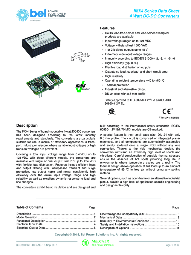 40IMX4-2424-8G Converter, DC-DC, Board-mountable, 4W, 20Vdc in, One +5Vdc/350mA Out and On...