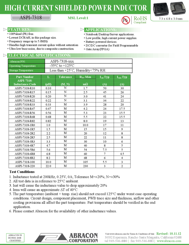 ASPI-7318-6R8M-T, ASPI-7318-100M-T, ASPI-7318-1R0M-T