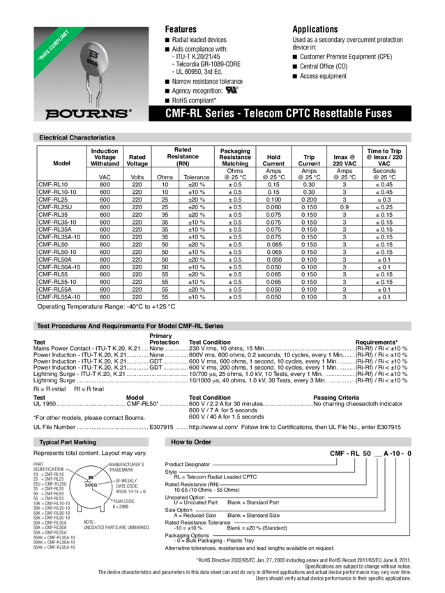 CMF-RL35-0 PTC Resettable Fuse 220VAC Bulk