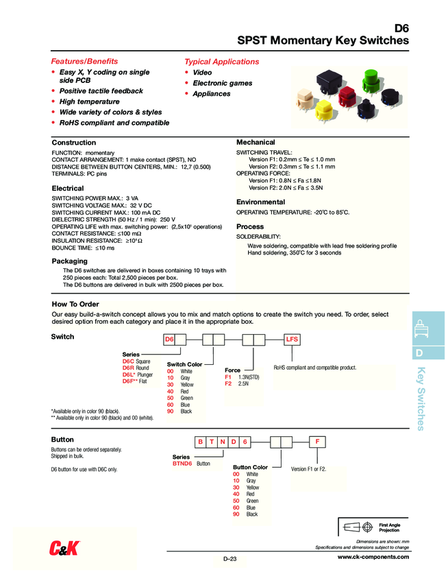 D6C00 F1 LFS Electromechanical Switch Key Switch N.O. SPST 0.1A Box