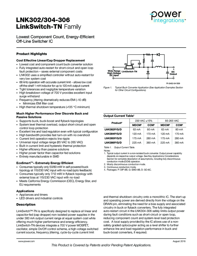 LNK302DN, LNK304DN, LNK305DN, LNK304GN, LNK305GN, LNK305PN, LNK306GN, LNK304GN-TL, LNK302PN, LNK302GN, LNK302DN-TL, LNK306DN-TL, LNK305DG-TL, LNK302DG, LNK302DG-TL, LNK305DG, LNK306DG, LNK306DG-TL