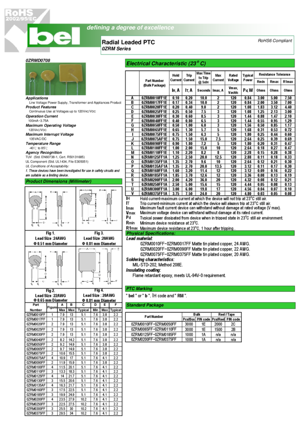 0ZRM0300FF1A PTC Resettable Fuse 17A 120VDC/120VAC Bulk