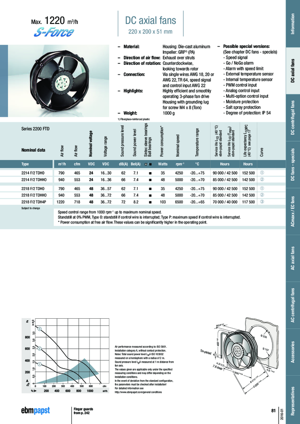 2218 F/2 TDH4P DC Fan Ball Bearing 24V 35W 5000RPM 552.9CFM 66dB Flange Mount