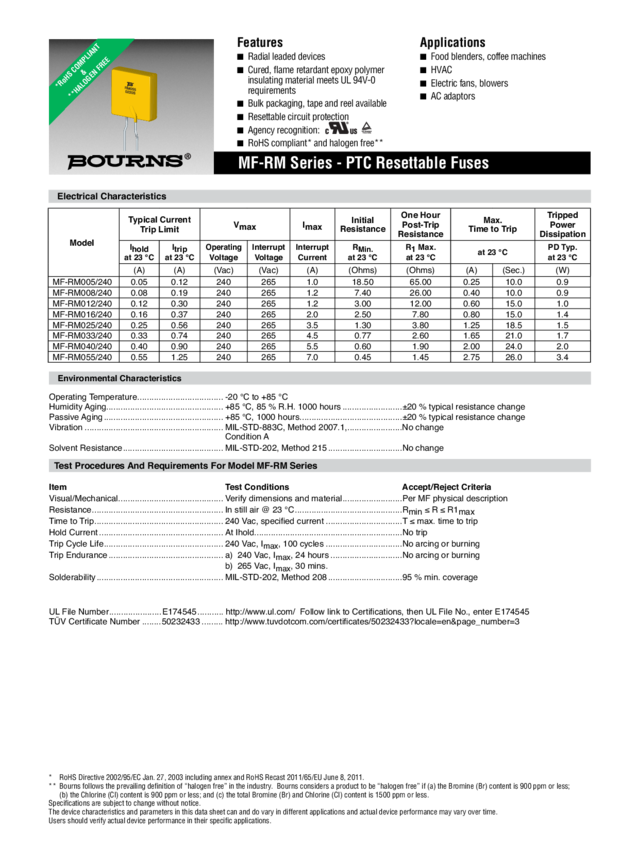MF-RM055/240-0 PTC Resettable Fuse 240VAC Bulk