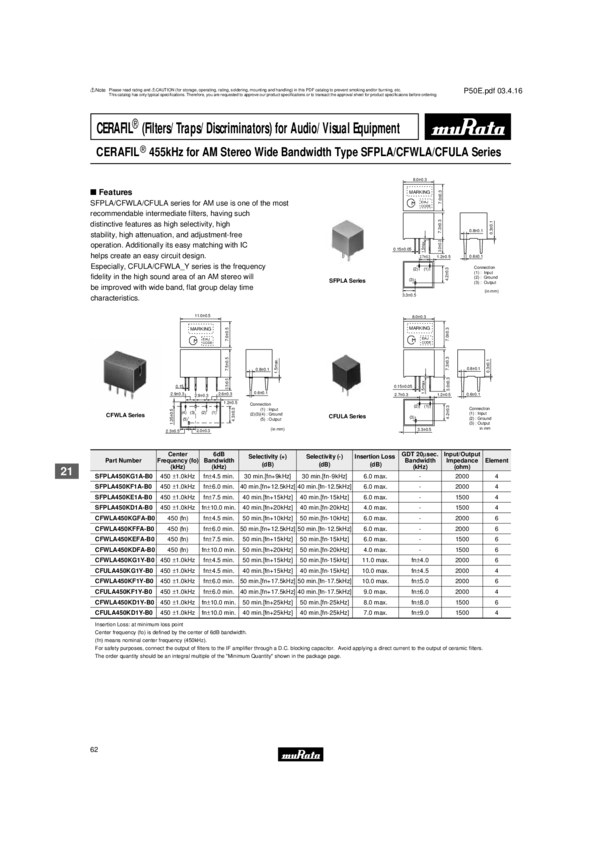 CFWLA450KEFA-B0 Electromechanical Filter Ceramic Filter