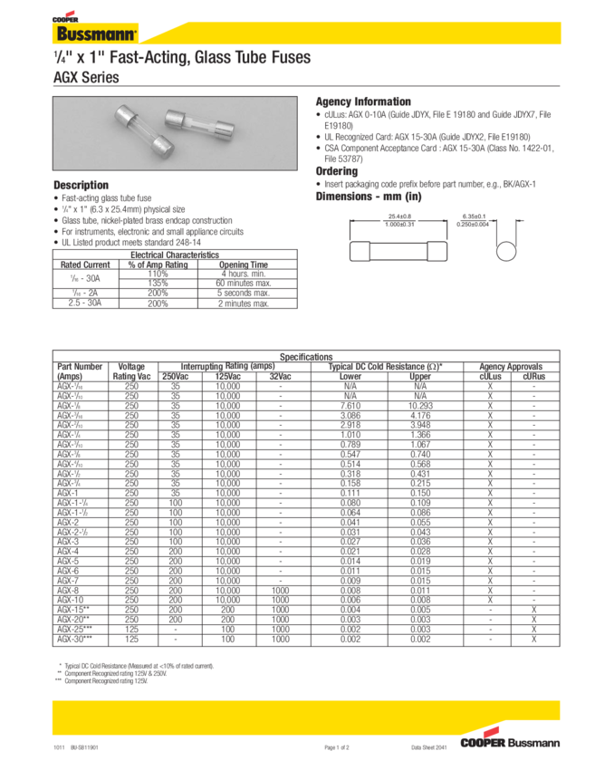 BK/AGX-2 Fuse Plug 2A 250V Fast 2-Pin Cartridge Holder Bulk