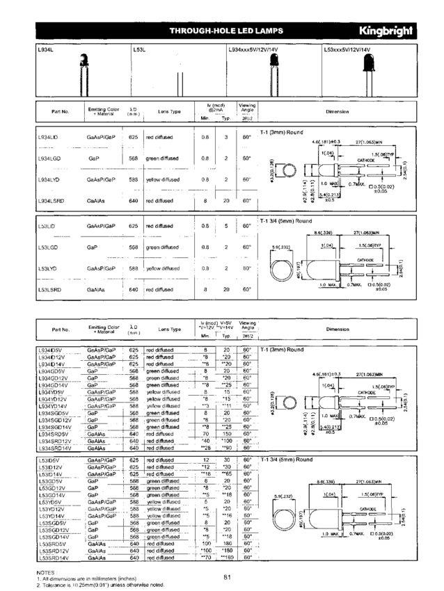 L-53LYD LED Uni-Color Red 660nm 2-Pin T-1