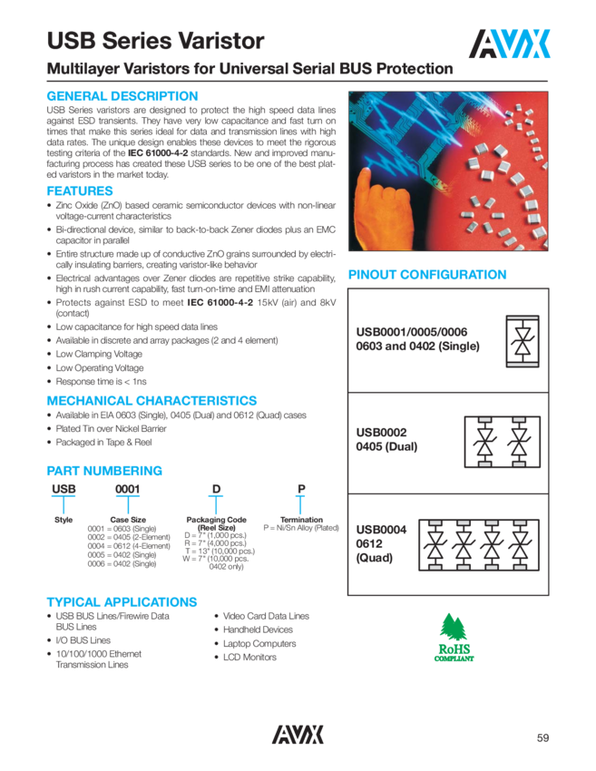 USB0001RP Var MLV 14VAC/18VDC 4A 120V 0603 SMD T/R