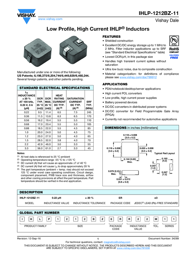 IHLP1212BZER3R3M11, IHLP1212BZERR22M11, IHLP1212BZERR36M11, IHLP1212BZERR56M11, IHLP1212BZERR68M11, IHLP1212BZERR88M11, IHLP1212BZER1R2M11, IHLP1212BZER1R0M11