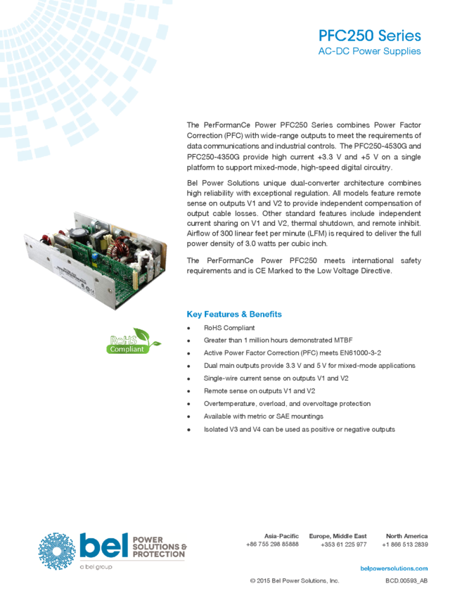 PFC250-4530G AC/DC Power Supply Quad-OUT 5V/3.3V/12V/12V 40A/20A/6A/3A 250W