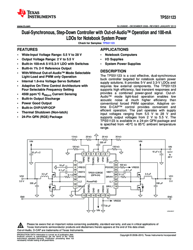 TPS51123RGET DC DC Cntrlr Dual-OUT Synchronous Step Down Controller/PWM DC to DC Control...